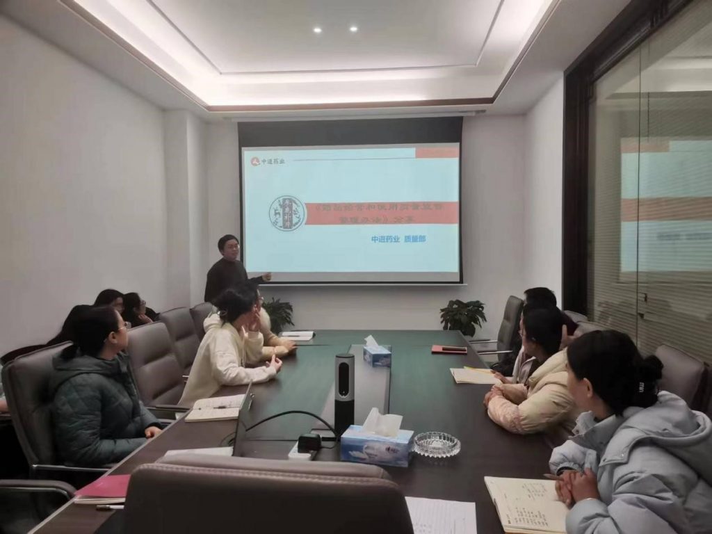 培訓中質量負責人針對上市許可持有人委托銷售、網絡銷售等部分條款進行詳細講解,并指出這兩年是換證大年,我們幾家商業子公司也都會在今年陸續換證,我們也要為換證提前提前做好工作準備。要求大家在日后的工作中,繼續遵守GSP細則規范操作,不斷學習,扎實工作,規避經營過程中的質量風險,為中進藥業蒸蒸日上的事業添磚加瓦。