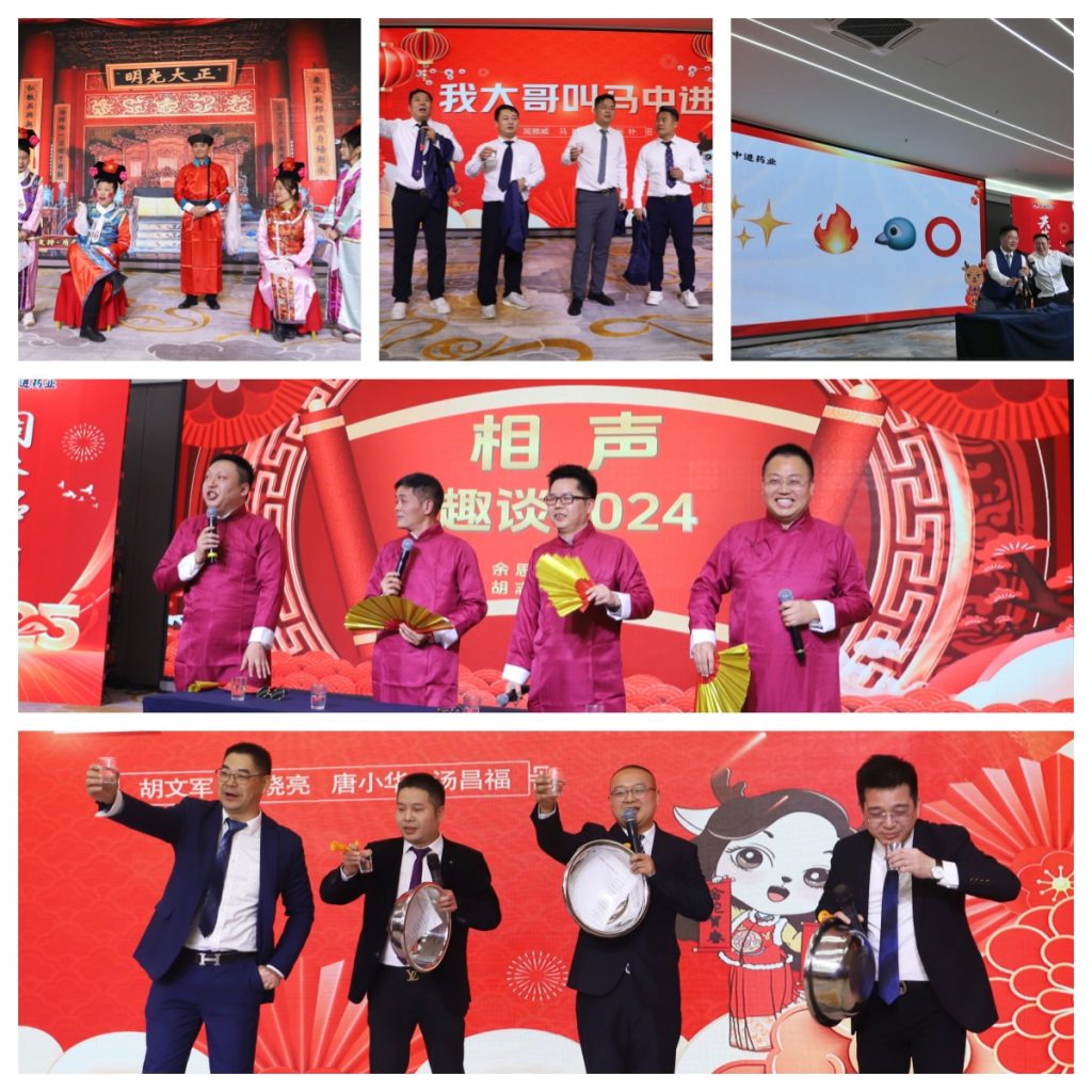 笑料百出,妙趣橫生。《咖妃駕到》、《emoji表情包猜成語》、《“中進”那些事兒》、《我大哥叫馬中進》、《趣談2024》等表演一次次激起氛圍的浪花,洗去舊年的疲憊。