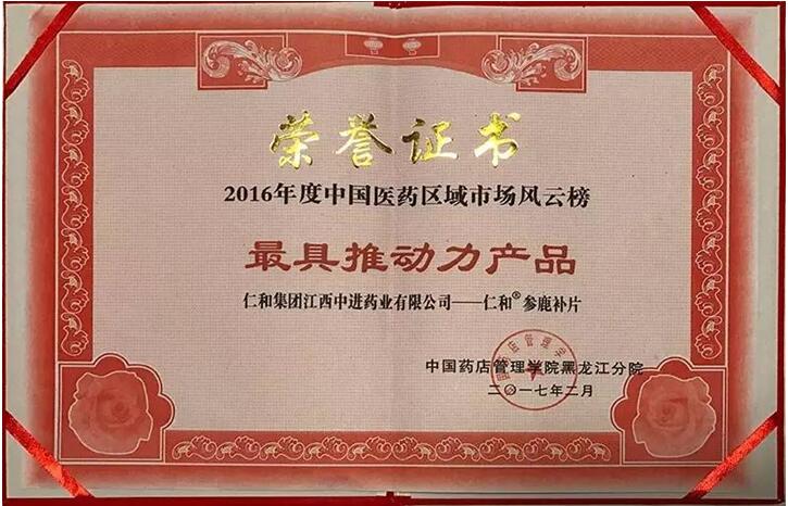 2、2016年中國醫藥區域市場系列產品榜單公布,參鹿補片再獲殊榮