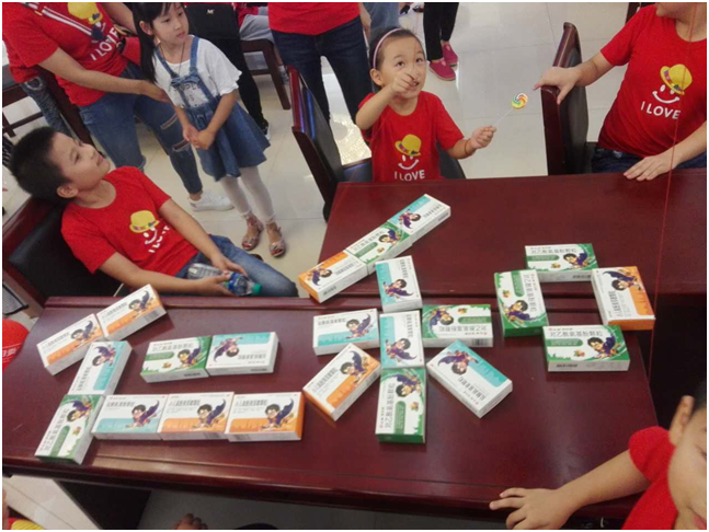 孩子們分組用“米阿卡”系列的樣品盒進(jìn)行折盒子比賽,孩子們腦洞大開(kāi),排成各種形狀,還有小朋友用樣品盒擺出了“仁和”兩個(gè)字。