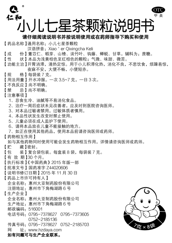定驚消滯。用于小兒消化不良,不思飲食,二便不暢,夜寐不安。