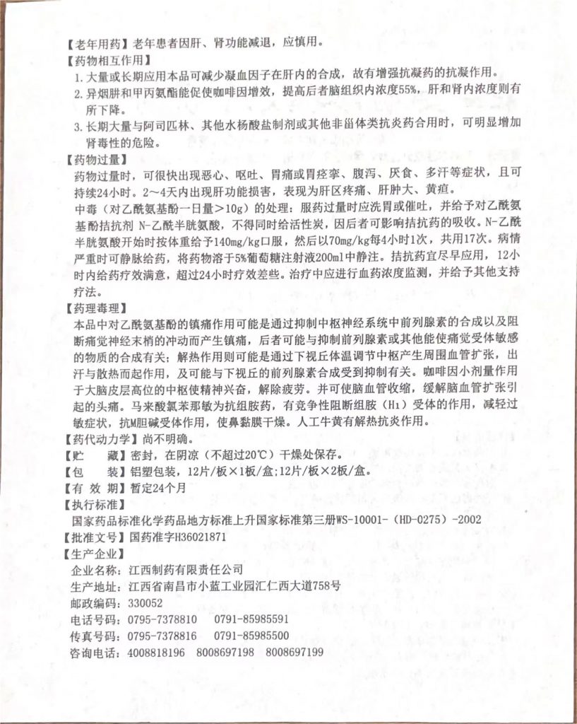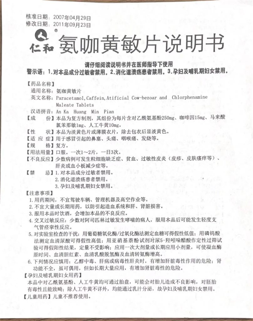 氨咖黃敏片