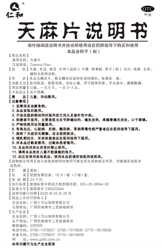 祛風(fēng)除濕,舒筋通絡(luò),活血止痛。用于肢體拘攣,手足麻木,腰腿酸痛。