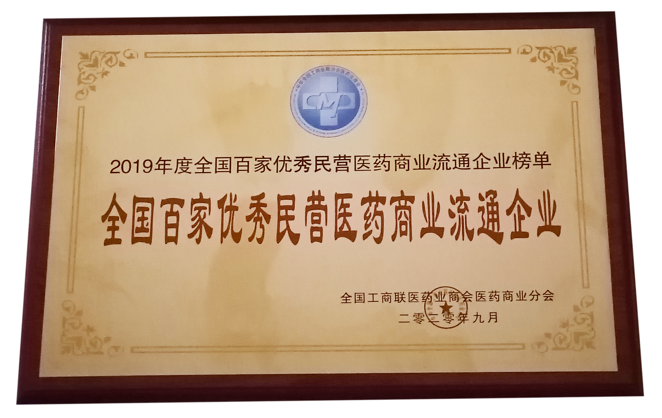 中進(jìn)藥業(yè)榮膺2019年度全國(guó)百家優(yōu)秀民營(yíng)醫(yī)藥商業(yè)流通企業(yè)稱號(hào)