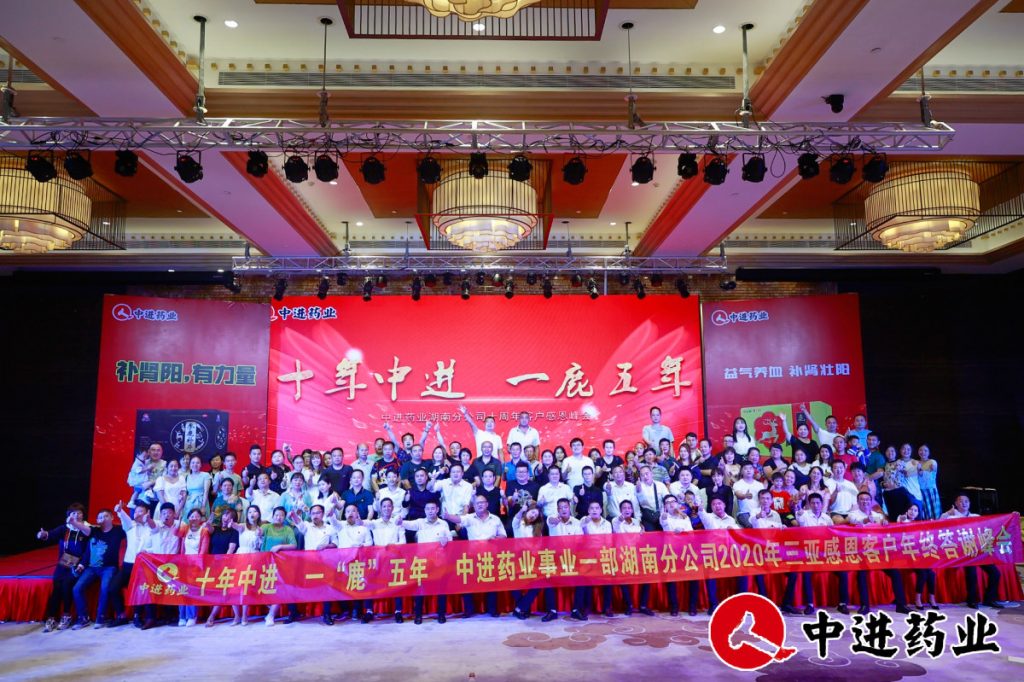 26日上午10點,省區所有工作人員到達西藏大廈酒店4樓宴會廳,大家分工明確,擺放好活動所需禮品以及相關物料,營造一片溫馨熱情的氛圍等待客戶的到來。4點至5點,客戶們陸續來到西藏大廈酒店4樓宴會廳進行簽到墻合影留念,下午5點整,一分鐘的倒計時視頻拉開宴會的序幕,事業一部總經理晏育松在主持人的開場白后上臺致辭,表達了對到場嘉賓的感謝之情,仁和在往后工作中將用更優質的服務對待每一位客戶,實現互利共贏。接下來由省區總經理楊優帶領兩名連鎖客戶代表上臺發言,同時在晚宴上,中進藥業金牌講師鐘山老師向在坐的來賓們介紹公司重點產品——鹿膠、參鹿補片、氨糖等,新品上市無疑是一個全新且具有重要意義的合作契機,贏得了在場客戶的陣陣掌聲。隨后我們用小程序給幸運觀眾頒發禮品,晚宴隨著省區總經理楊優帶著湖南省區全體人員給大家帶來表演“朋友”中邁向高潮,有的嘉賓紛紛上臺給大家帶來他們的才藝表演,在互動游戲和表演中宴會臨近結尾,省區運營經理龔勝和黃威給大家送上十年中進生日蛋糕,給所有參與嘉賓送上參鹿補片字樣的紀念金磚,在全場合影留念中,2020年“十年中進,一鹿五年”湖南分公司感恩答謝會至此圓滿結束。 27日,客戶朋友在省區的安排下,分五個小組搭乘不同航班揮別熱情美麗的三亞,陸續返程。