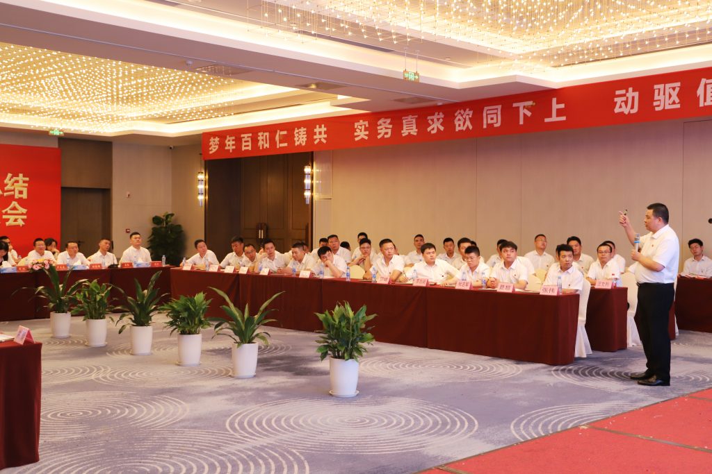 隨后,銷售管理部部長程軍輝對公司上半年經營數據進行了通報,并對下半年指標達成、授信歸還、網絡低價等進行了宣導。副總經理兼市場部部長羅來虎從產品運行、品牌建設、培訓推廣三個方面進行了總結宣導。