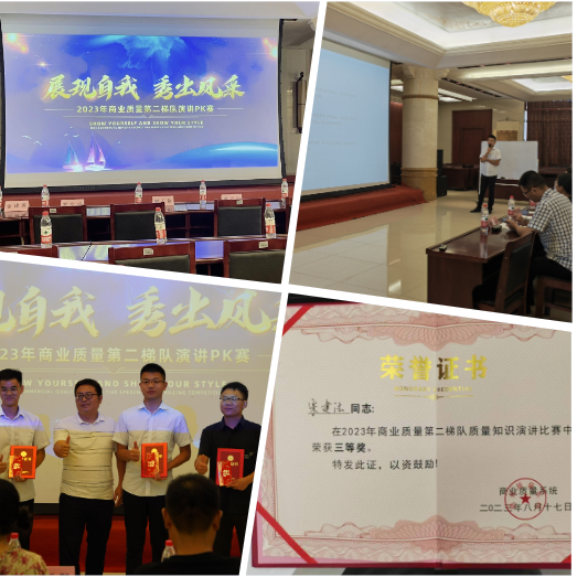 2023年8月17日下午,商業(yè)質(zhì)量中心在863仁和堂一樓會議室舉行了“展現(xiàn)自我 秀出風(fēng)采”的演講比賽,參與此次PK賽的17位選手分別來自各商業(yè)子公司質(zhì)量部。大家在臺上分享了各自的工作經(jīng)驗、感想心得,讓我們受益良多。
