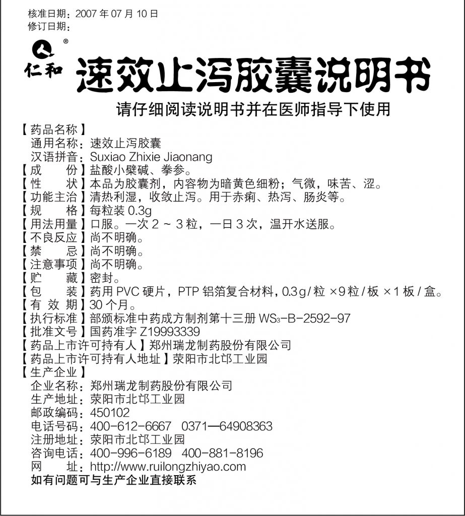 清熱利濕,收斂止瀉。用于赤痢、熱瀉、腸炎等。[規(guī)格]每粒裝0.3g(含鹽酸小檗堿120mg)